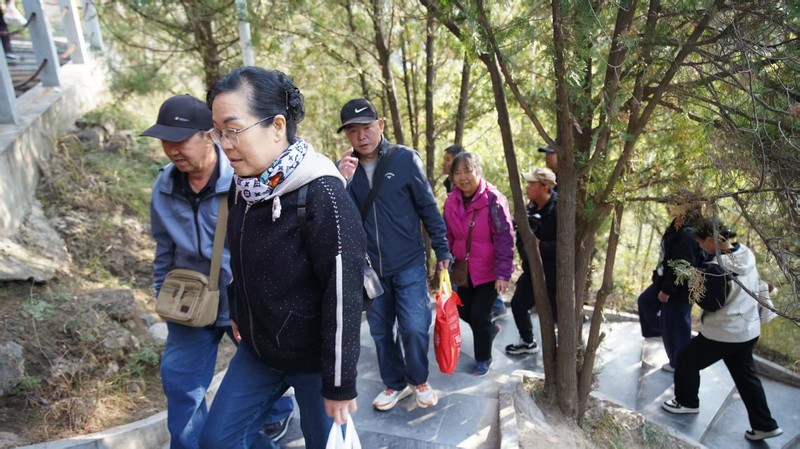 上午10 时,登高活动在仁寿山景区入口广场正式拉开帷幕。街道工作人员向退休职工送上节日祝福,讲解重阳节登高祈福的文化意义,为退休职工发放含牛奶、面包等补充体力的暖心能量包。随后,职工们按社区分为 3-4 组,在工作人员带领下沿预设路线登高赏秋,一路上,大家步伐稳健,谈笑风生,不时驻足欣赏沿途的秋日美景,金黄的银杏叶、火红的枫叶交相辉映,构成了一幅幅美丽的画卷。途中还设置了“重阳知识问答”环节,问题涵盖了重阳节的起源、习俗等方面,退休职工们积极参与,现场气氛热烈而欢快。到达山顶后,大家纷纷合影留念,记录下这难忘的时刻。