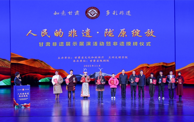 吕兴来在致辞中指出,近年来,甘肃非遗领域深入贯彻落实习近平文化思想、习近平总书记关于非遗保护工作的重要指示批示精神,在省委、省政府的坚强领导下,坚持保护第一、活态传承、守正创新、合理利用的工作要求,积极培养传承人,扎实做好非物质文化遗产的系统性保护,更好地满足人民日益增长的精神文化需求。2025年,全省有16人入选第六批国家级非物质文化遗产代表性传承人名单,9人入选全国首批“青年非遗视频创作哺育行动”哺育名录。截至目前,全省共认定各级非遗代表性项目9119项,非遗代表性传承人14227人。其中,国家级非遗代表性项目83项,国家级非遗代表性传承人84名;省级非遗代表性项目778项,省级非遗代表性传承人757名。传承人是非遗的重要承载者和传递者,被誉为非遗保护的“活化石”。我们大力支持非遗传承人开展传承活动,让古老的技艺后继有人,让宝贵的文化种子在年轻一代心中生根发芽。深入推进非遗“进景区、进社区、进校园”活动,以硬核实力持续擦亮“如意甘肃·多彩非遗”文化品牌。
