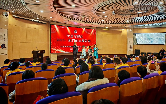 会议指出,2025年省博物馆志愿者团队秉持“奉献、友爱、互助、进步”的志愿精神,坚守文化传承初心,以饱满的热情专业的服务,守护历史瑰宝讲好甘肃故事。在讲解服务、文化传播、社会教育、合作交流等方面做出了积极贡献,让博物馆的光芒照亮更广阔的社会空间,为增强文化自信,建设文化强省贡献了志愿力量。新的一年,省博物馆将继续为志愿者在服务专业化、项目品牌化、管理精细化、合作多元化等方面搭建更广阔的平台,优化保障机制,共同推动文博事业高质量发展。