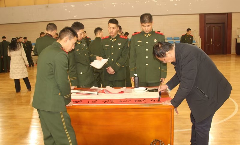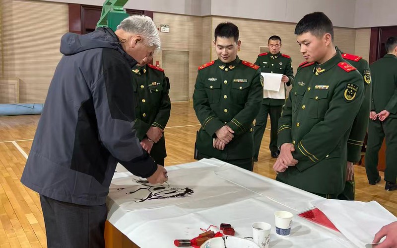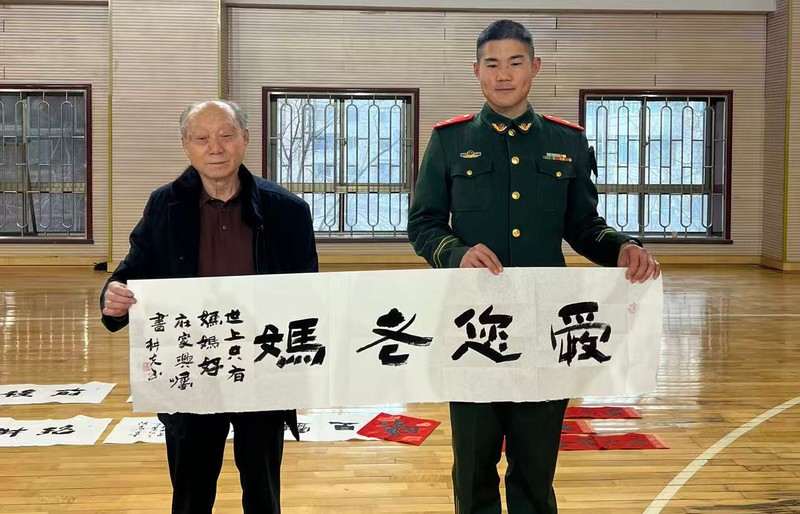 老干部学雷锋志愿服务团团长刘洪泽表示,武警官兵常年坚守一线,舍小家为大家,用青春和热血守护人民的幸福安宁,是新时代最可爱的人。作为学雷锋志愿者,以书画为纽带开展慰问活动,既是弘扬雷锋精神,传递社会正能量的具体行动,也是向人民子弟兵致敬的生动表达,希望通过一幅幅作品,为官兵们增添节日的喜庆氛围,让他们在军营中也能感受到家一般的温暖。