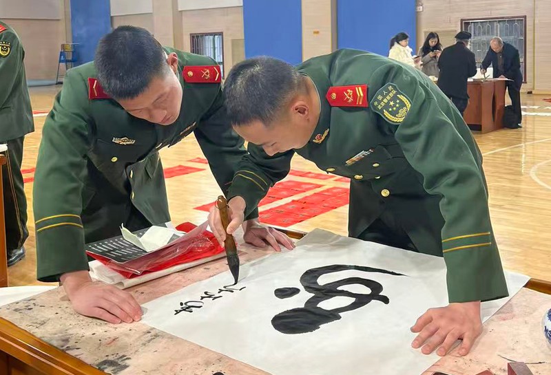 新春将至,年味渐浓,为致敬坚守岗位、守护一方平安的武警官兵,传承弘扬雷锋精神,兰州市城关区大教梁社区组织老干部学雷锋志愿服务团、爱心企业甘肃中益诚达建设集团一起走进武警部队驻地,开展“翰墨迎新春,丹青颂军魂”慰问活动,用笔墨丹青传递深情厚谊,为官兵们送上最真挚的新春祝福。