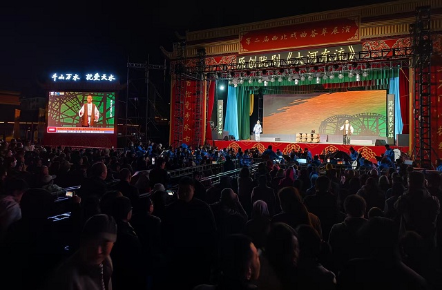 《大河东流》是甘肃省陇剧院近年来重点打造的原创剧目,先后荣获多项省级及国家级荣誉。此次赴天水参加第二届“西北戏曲荟萃展演”,是该剧首次以露天舞台全本形式与广大戏迷见面。省陇剧院派出最强阵容,并首次在户外广场演出中配备50余人的民族乐团,以实际行动落实《戏剧振兴三年行动计划(2026—2028年)》,推动优质文化资源直达基层。