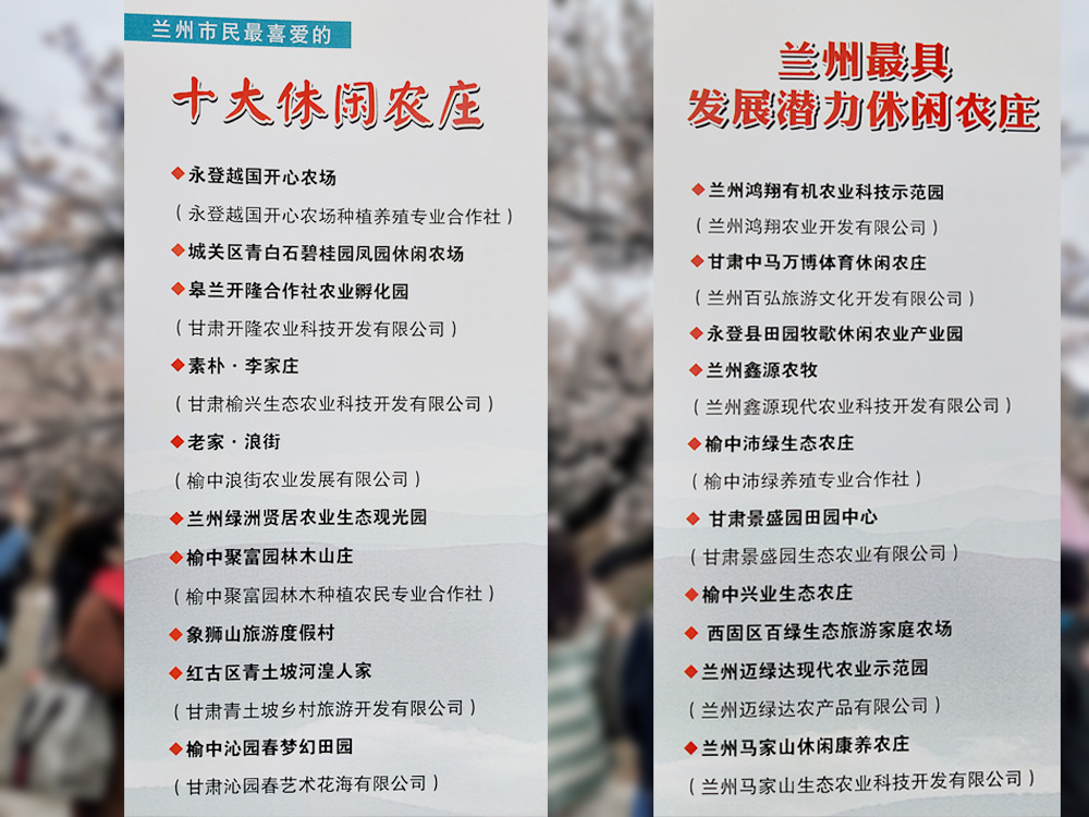 4月2日下午(皋兰县九合镇首届杏花旅游节开幕当日),由兰州市休闲农业与乡村旅游产业协会主办、兰州市皋兰县九合镇人民政府、兰州市城关区旅游发展行业协会协办,甘肃景盛源生态农业有限公司等单位承办的“兰州十大休闲农庄及十大最具发展潜力农庄推介活动” 在甘肃开隆农业科技合作社举行。