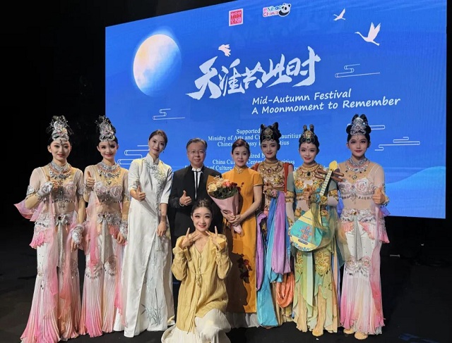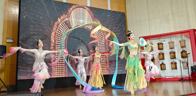 9月27日,《天涯共此时》中秋主题文化活动举办,甘肃与天津文艺同仁携手,共同打造一场融合多地域、多风格的中华文化盛宴。甘肃艺术家先后带来竹笛独奏《牧民新歌》、舞蹈《唐·胡旋舞》《霓裳羽衣舞》、二胡与琵琶合奏《茉莉花》及民乐合奏《金蛇狂舞》,以《乐舞敦煌》压轴登场,为整场活动画上圆满句号。
