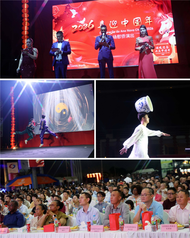 张斌大使在致辞中表示,中安各领域合作交流在两国领导人的共同引领下蓬勃发展。2026年“中非人文交流年”是落实中非合作论坛成果的重要举措。中方愿继续同安方深化两国文明互鉴,促进中安民心相通。文化和旅游部委派甘肃文艺团组在春节临近之际来安哥拉演出,必将有力推动中安文化交流持续深入发展。