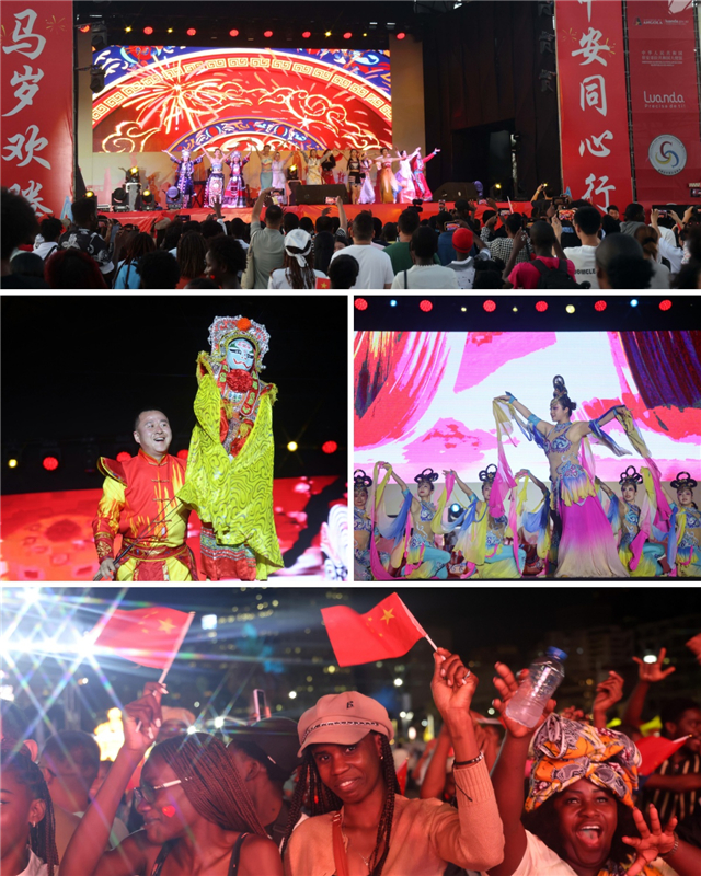 尤其是慰侨专场演出现场,当听到传统民乐唢呐、葫芦丝、笛子演奏《送别》《让我们荡起双桨》《月光下的凤尾竹》等华人华侨耳熟能详的曲目时,看到传承人手持京剧造型的木偶变脸和刀枪剑戟上下翻飞的武术表演时,很多华人华侨不禁热泪盈眶,跟着音乐节奏一起哼唱歌曲,与演员积极互动。演出结束后,许多观众久久不愿离去,纷纷与演员合影留念,安哥拉陕西总商会负责人激动地说:“今天使馆邀请到甘肃艺术团不远万里来到安哥拉慰问演出,让长期身在异国他乡的我们感受到来自祖国亲人们的问候,特别是精彩的文艺演出,向安哥拉当地民众生动展现了中国传统文化,作为中国人感到无比自豪和骄傲!”