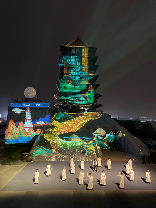 兰州黄河楼以“骏马迎春福耀金城”为主题,以黄河为幕、楼宇为台,展现金城深厚文化底蕴。黄河颂·《大有兰州》实景演出点亮金城,一幕幕光影,娓娓讲述兰州的故事。白天的活动同样精彩纷呈,飞天舞、民族舞轮番展演,演员邀游客同台共舞,携手欢喜过大年。2026年兰州春节文化庙会也落地于此,太平鼓、舞狮与传统戏曲轮番登场,尽显西北民俗独特魅力。