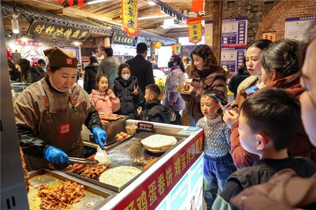 非遗进街促消费。镇原县聚德小镇举办“抓福猪、赢国台、吃老席”系列活动,非遗老席、陇东社火、篝火晚会吸引各地游客沉浸式感受西北最浓年味。西峰区在前进机械厂工业遗存打造非遗体验暨“农”味年货集市,环县环州故城举办“万马迎春 年味环州”年货节,华池县南梁推出“红色集市过大年”,宁县“寻味宁州”等10多处“非遗年货集市”集中亮相,为游客和市民带来休闲购物、娱乐美食全新体验。