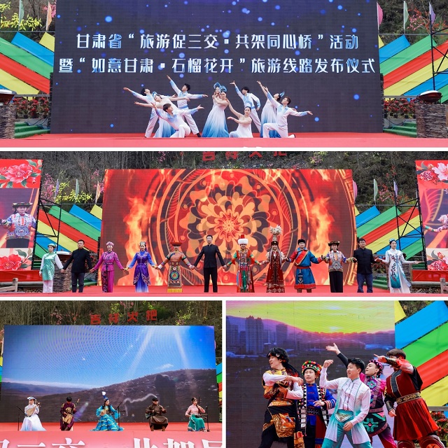活动现场以“短片+童声讲述”沉浸式模式,推出“如意甘肃・石榴花开”黄河历史文化探源游、生态民俗风情体验游、长征红色印记笃行游等七大主题22条精品旅游线路,全景串联全省文旅精粹与各民族交往交流交融的生动实践,成为读懂陇原民族之美的重要窗口。活动展演精彩纷呈,舞蹈《如意甘肃・同心共舞》点燃现场氛围,融合五种民族乐器的《山川的回响》演绎文化交融之美;亮点环节《风从陇上来》主题走秀中,10位旅游推荐者手持家乡特产登台,用乡音发出邀约,现场互动热烈。来自甘南州舟曲县的推荐者感慨,旅游让深山里的山货走出大山,乡亲们吃上了“旅游饭”,成为甘肃“旅游促三交”工作生动实践的缩影。