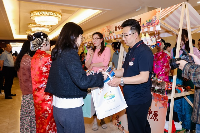 会场外特设“如意甘肃”文创市集,敦煌飞天盲盒、兰小五主题文创、铜奔马摆件、庆阳香包等文创与特产集中亮相,河南旅行商代表在展台前流连点赞:“这不仅是文创与特产的展示,更是把甘肃深厚的文化底蕴,做成了可触摸、可带走的动人故事。”