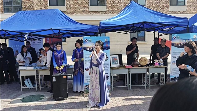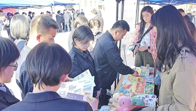 活动形式多样,现场氛围热烈。活动现场,临夏州民族歌舞剧团演员带来了花儿演唱、民族舞蹈等快闪表演,以热情洋溢的歌舞展现临夏独特的民族文化魅力。各县市文体广电和旅游局设立咨询台,发放临夏旅游宣传折页、景区优惠券及彩陶钥匙扣、花儿书签、手绘地图等定制文创小礼品。临夏州博物馆工作人员现场宣传馆藏精品和研学资源,讲述马家窑彩陶、齐家玉器等文物背后的故事。互动环节中,师生积极参与“临夏知多少”有奖问答,答对者获得景区门票或非遗文创纪念品,现场气氛活跃。