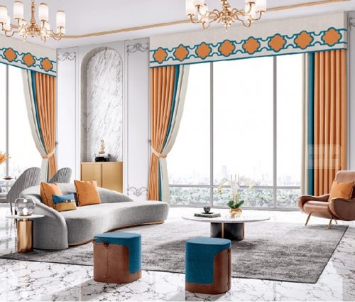 直播中,李老师重点为大家介绍了2021春季新品门面担当“巴黎惊艳”和销量王者“丝绸之路”。“巴黎惊艳”采用经典流行色彩爱马仕橙和静谧蓝,爱马仕橙高贵神秘,寓意着时尚和潮流,充满年轻的朝气与活力,加上蓝色的纯净深邃,空间色彩更加丰富。“丝绸之路”灵感来源于仙鹤,在中国,仙鹤寓意延年益寿,对年轻人来说无疑是一种文化的传承,幔头造型中仙鹤与山、祥云、太阳融合,以从右到左的趋势飞翔,飞向高处和光明,体现一派祥和之景,更有高升之意。如鱼得水溢彩窗帘,从颜值到质感,再到内涵,无一不击中年轻消费群体的喜好。