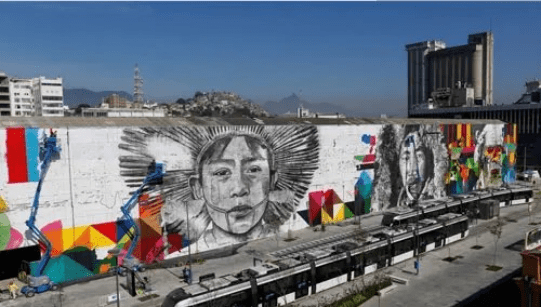 为迎接巴西奥运会,巴西涂鸦艺术家,创作了面积3000多平米的涂鸦墙,分别是巴西个名族人物形象代表,表达平等、互助、和平。