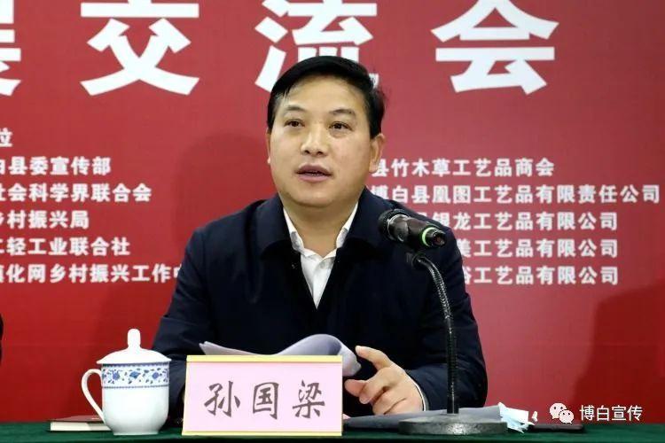 孙国梁首先在交流会上致辞。他表示,全面推进乡村振兴是新时代建设农业强国的重要任务,人力投入、物力配置、财力保障都要转移到乡村振兴上来。博白县是中国编织工艺品之都,全县发展编织企业386家,打造形成了国家级出口竹木草制品质量安全示范区、竹木草制品外贸出口转型升级基地。截至目前,全县编织行业固定从业人员有2.1万人,临时、季节性从业人员约20万人,吸纳全县13个乡镇农民特别是农村富余劳动力就业;全县有省级工艺美术大师1人、市级工艺美术大师18人、自治区工艺美术大师工作室1个。博白县委、县政府历来重视“三农”工作,始终坚持农业农村优先发展,以产业赋能农业农村现代化,走出了一条特色鲜明的乡村振兴之路。