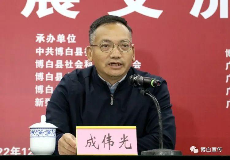 成伟光在交流会上作了讲话。他表示,博白县地处两广三市交汇处,是粤港澳大湾区和北部湾经济区的交汇处,也是玉林全面“东融”、发展壮大向海经济的桥头堡,博白还是人口大县,是世界上最多客家人的聚居县,劳动力丰富、区位优势明显、资源禀赋优越、产业配套齐全、营商环境良好,对于全力打响“中国编织工艺品之都”品牌,促进博白编织工艺品等民族产业强劲发展,加速推进乡村振兴,推动博白高质量发展具有重要作用。希望社会科学组织多为地方发展积极贡献力量,不断创新工作思路、完善工作机制,多为地方经济出好点子、金点子,多为地方经济找出路、出思路,有效地整合地方社科资源,更好地为地方经济社会建设和发展提供智力支持。希望博白县抢抓重大历史机遇,充分利用“中国编织工艺品之都”的品牌效应,持续坚持重特色、强龙头、补链条、聚集群、促创新,大力发展具有博白特色的芒竹编产业,增强市场的竞争力和可持续发展,以产业兴旺带动乡村振兴,带动农业增效、农民增收。