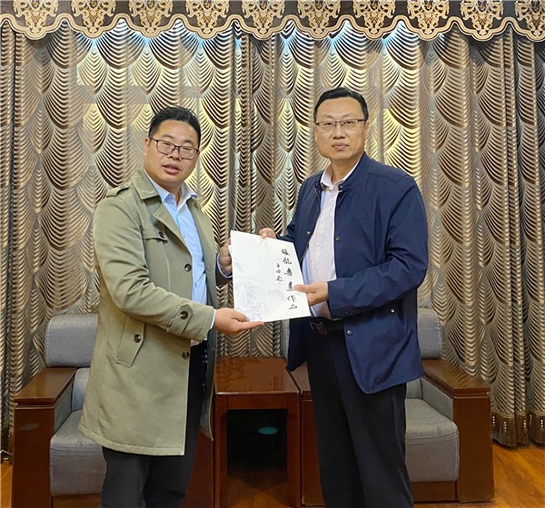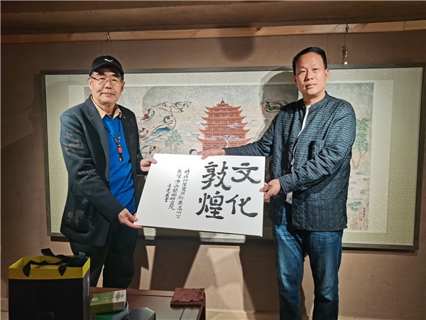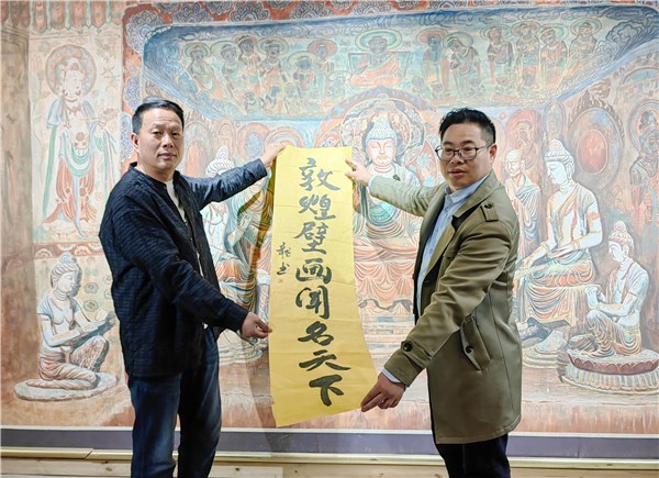 西安是长安画派的诞生地,敦煌画派也在敦煌应运而生。作为长安画派传承人著名山水画家崔振宽的弟子李荣教授专门拜访了敦煌画派艺术研究院院长、著名画家李建英,著名王峰画家等文化艺术界以及教育界人士,双方就敦煌壁画传承与创新,青少年发扬敦煌文化精神,增強文化自信,深化“中国研学旅游目的地”建设进行了深入的交流,达成了多项合作意向。