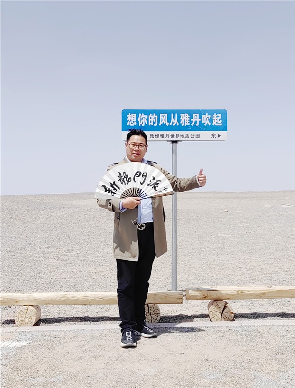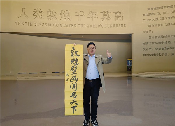 青年文化学者、西部新闻网总编辑张龙作为中国管理科学研究院特约研究员、老子故里文化顾问、两汉三国文化推广大使,第一次踏上丝绸之路的敦煌,深深被这里的自然景观和人文胜景所折服,张龙在多个景点打卡、拍抖音视频,并为多个景区题字,同时即兴赋诗一首: