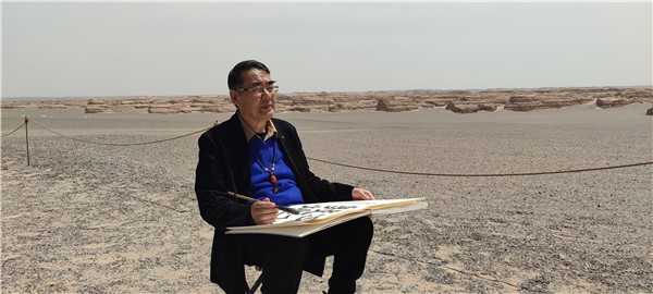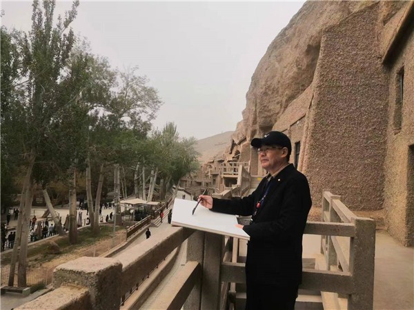 大漠孤烟直,长河落日圆。雅丹地貌的苍茫大气,西出阳关无故人的苍凉,玉门关的孤寂,都激发了作为画家的李荣教授的创作热情,夹着册页凝视千年壁画的永不退色之谜;夹着马扎坐在雅丹戈壁上,手执画笔,追思这里的沧海桑田变幻;望着月牙泉边一个个驼队远去的背影,构思着丝路追梦的动人画幅……随机写生多幅作品,用画幅纪录了敦煌“可游、可玩、可看、可乐”的胜景。
