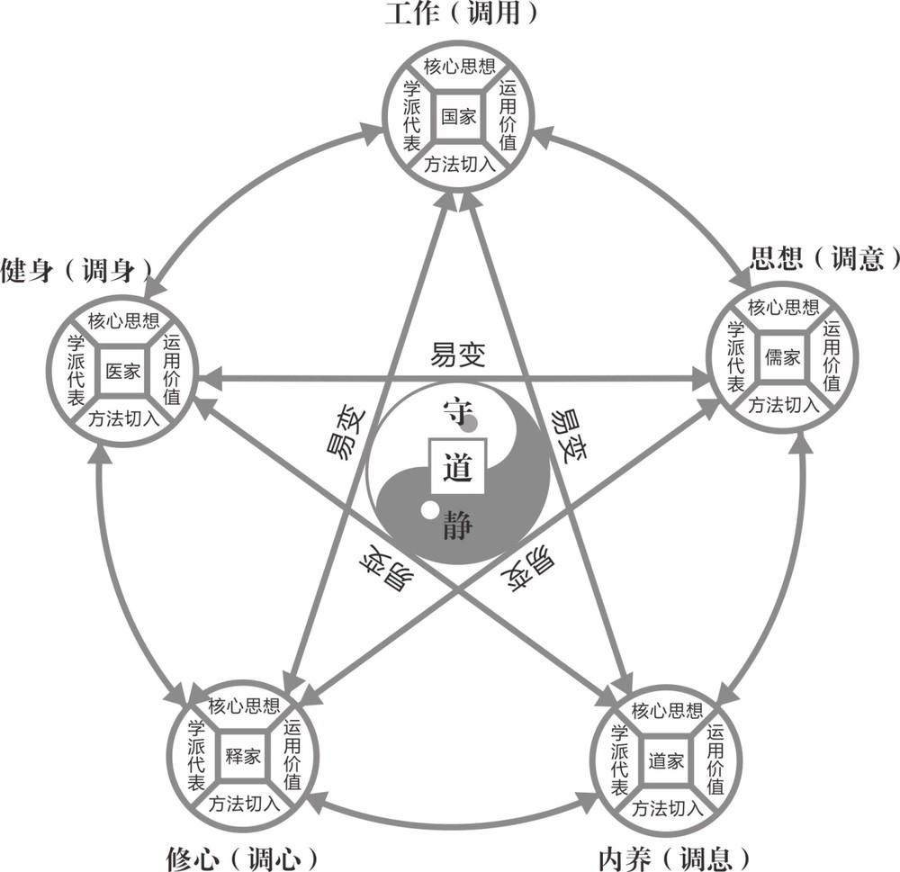 2、儒释道医国五家之间文化相互影响、相互借鉴,紧紧围绕宇宙变化总规律——常道来演绎。五家文化最终揭示了人作为万物之灵的宇宙代表的玄妙与使命担当。