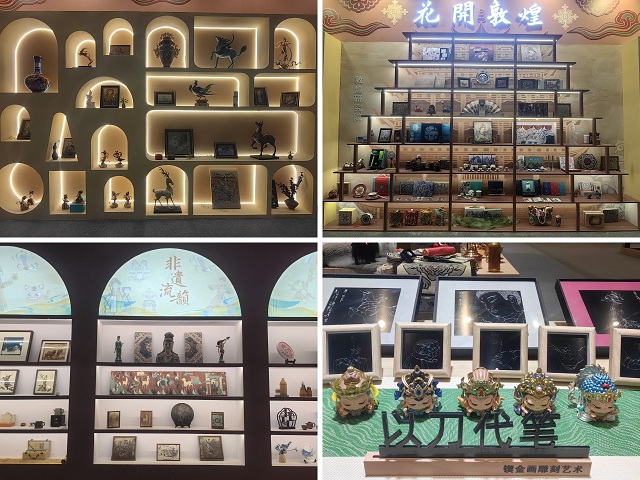 此次展览,共展出1200多个品类的万余件非遗文创产品,参展企业和产品的数量创历届敦煌文博会文创展览之最,全面展现了甘肃非遗和文创产品的时代风貌和整体特色,展示了甘肃非遗及文创产品创新研发成果。