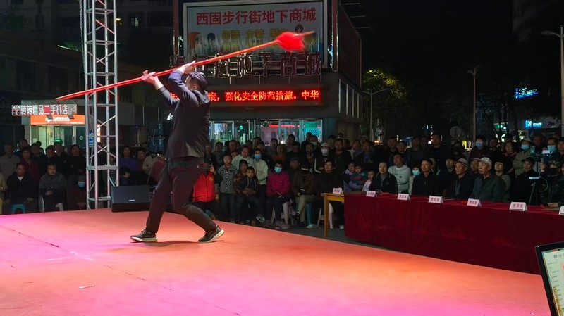 这场表演,更是“爱国护家”精神的生动诠释!舞台上金城龙明大枪如蛟龙出海以吞天吐地之势精彩上演,封手八门跌打翻飞,凌厉招式如当年边军冲锋,护家卫国不含糊;披挂翻子“一挂鞭”,脆快劲道似戍卒巡边,守土尽责不退缩;太极拳、八卦掌钻裹拧转,柔中藏刚恰如中华儿女,外显谦和、内有筋骨!更有秦州鞭杆、河州棍、兰州鞭杆夹棍轮番登场,棍影翻飞是“护家”的决心,鞭声清脆是“爱国”的誓言——这每一招每一式,都是中华儿女“爱国护家”的真性情,都是咱中国人的精气神!这些古边军武艺的传承,它不是简单的拳脚招式,而是先祖留给我们的“精神铠甲”,是“爱家”与“爱国”拧成的民族筋骨。