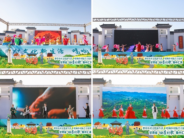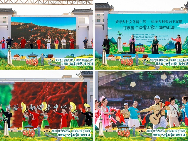 参加汇演的团队,在各市州遴选推荐的58支优秀“村歌”队伍中选拔产生,擅长演唱本区域代表性民歌,地方特色鲜明、广受群众喜爱、适合新媒体传播推广。二重唱《龙头琴礼赞》、歌伴舞《十二属相》、乐队《道情声声吼破天》《大眼睛》极具地域和民族特色,让观众感受到民族风情大观园的别样之美;男声四重唱《甘谷辣椒情》、表演唱《嘉有烤肉》《幸福秧歌扭起来》、歌伴舞《门前有条幸福路》唱出了陇原百姓对家乡的挚爱眷恋,舞出了对美好生活的新憧憬;独唱《心在陇原走》《美丽的家乡》、二重唱《走进新农村》《东铺美丽的地方》、歌伴舞《马踏飞燕的地方》、联唱《会宁民歌》沉浸式引领观众走进歌者家乡,感受如意甘肃多样的诗和远方。同时,参加汇演的团队还分组赴武威雷台、文庙、白塔寺、天梯山石窟景区开展了快闪活动。