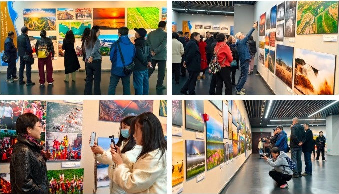 展览现场,来自沿黄九省区的270幅摄影作品,分为 “青海:源头活水,中华水塔,以冰川之洁孕育文明初心”“四川:九曲回肠第一湾,在若尔盖草原挥洒诗意飘逸的哈达”“甘肃:两进两出,奔涌913公里,在陇原大地泼墨挥洒绚丽画卷”“宁夏:天下黄河富宁夏,于塞上江南织就引黄灌溉的富饶传奇”“内蒙古:挥毫写就几字弯,在河套平原谱就农耕与游牧的交响乐章”“山西:吕梁太行风骨,以壶口瀑布的雷鸣响彻中华民族不屈历程”“陕西:怒吼三秦峡谷,以黄土高原的沧桑与新生激荡时代回响”“河南:中原腹地,华夏摇篮,以中流砥柱的坚守护佑黄河安澜”“山东:万里奔赴,河海相汇,于齐鲁大地绘就高质量发展的宏图画卷” 九个主题篇章依黄河流经区域依次呈现。