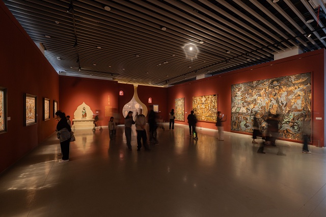 本次展览是甘肃与江西联手打造文化高地的重要活动,也是陇原文化与江西文化生动交流的舞台。展览以“历史叙事——文明交融”为脉络,分“大漠瓷音——丝路瓷缘的千年叙事”和“丝路和鸣——陶瓷之路的文明交融”两个篇章,汇聚了89位中外陶瓷艺术家精品力作150多件,通过洞窟式、高温颜色釉瓷板壁画、拼接式瓷片、瓷雕、陶瓷装置、器物画等多种艺术形式,集中展示了江西瓷艺工艺美术大师历时十年多次赴敦煌采风创作的优秀成果,系统展现了敦煌壁画、雕塑艺术与陶瓷艺术的共生魅力,呈现了当代艺术家对丝路文化的创新解读,为观众带来一场跨越时空的文化盛宴,也为甘赣两地文化交流搭建了重要平台。据悉,“釉色里的敦煌”展览的举办在江西省引发各界群众极大关注,展览当天即有近万群众入馆参观。