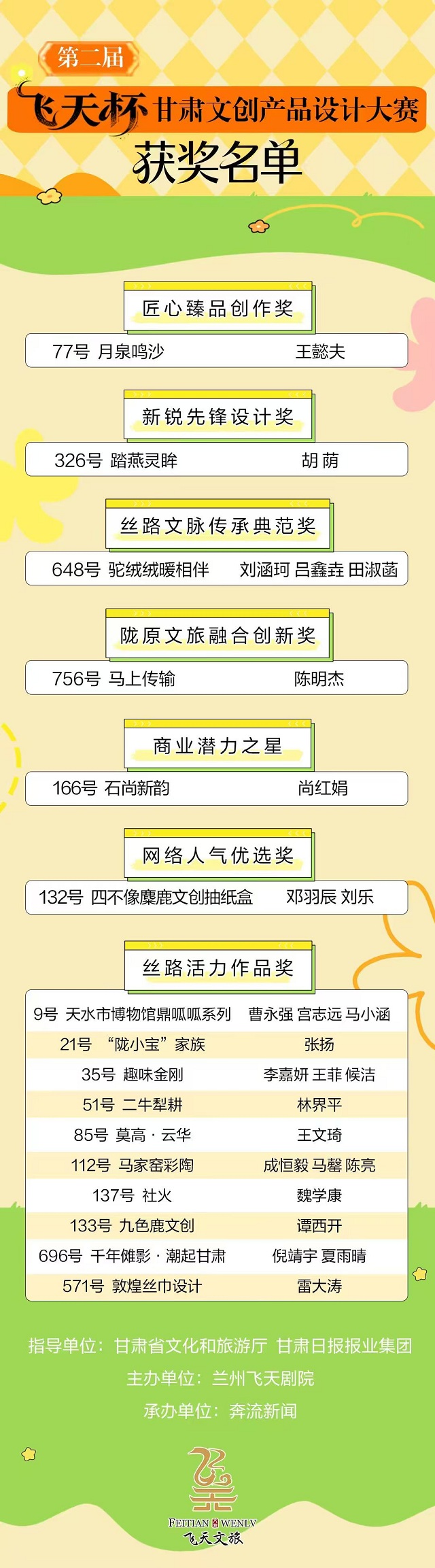 此次大赛的成功举办,进一步激发了文创人才的创作热情,为甘肃文旅产业注入了新的活力。未来,“飞天杯”大赛将持续搭建交流展示平台,助力甘肃文创走向更广阔的市场,赋能地方文旅经济高质量发展。