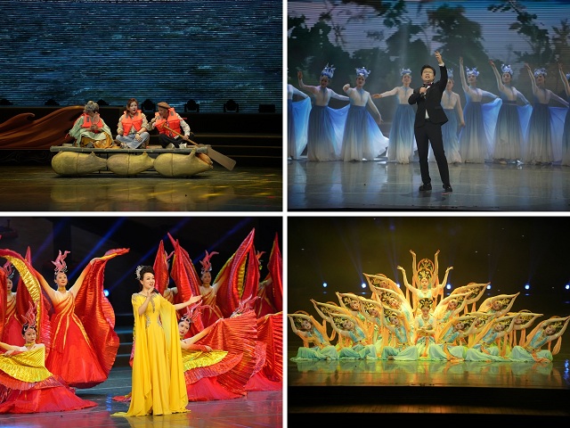 “心在陇原走”板块深挖陇原情怀与时代精神。兰州德艺坊的相声《筏客情》融入黄河生态保护主题,诙谐中见温情,引发全场共鸣;兰州市文化馆的原创歌舞《心在陇原走》融入“花儿”调式,再现祁连雪山、奔腾黄河的壮美;省文化馆的《最好的时代最好的你》唱响了对时代楷模的崇敬;酒泉市文化馆的敦煌舞《花雨·婆娑》以“反弹琵琶”“飞天飘带”等经典动作,尽显莫高窟壁画神韵与丝路文明魅力。