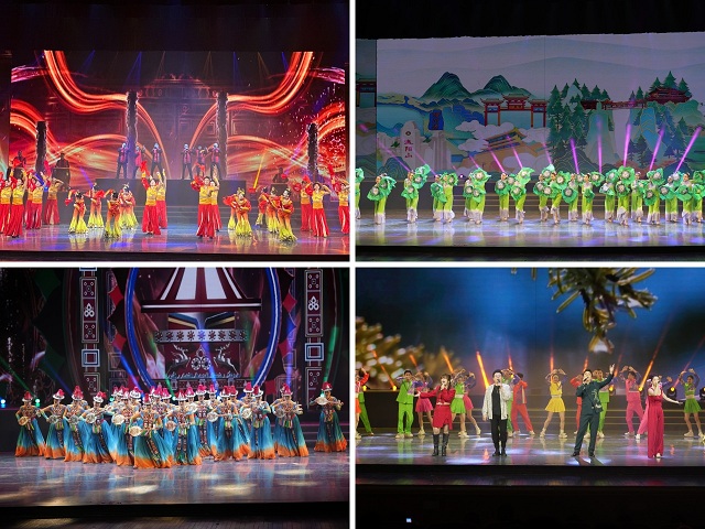 “欢歌启航”板块气势磅礴。兰州大剧院的鼓乐《欢歌启航》,将鼓舞的刚劲与现代舞蹈的灵动融合,震撼开场;定西市文化馆的广场舞《希望的田野》生动展现乡村振兴生机;裕固美舞蹈团的《裕音悠悠幸福来》呈现少数民族群众幸福生活的图景;原创歌舞《如意甘肃秀起来》搭配丹霞、戈壁等视觉投影,勾勒出如意甘肃的时代新颜。