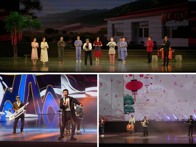 “黄土情黄河韵”板块聚焦非遗传承与创新。武威市文化馆的曲艺小品《祝寿》用方言说唱传递“沙漠变绿洲”的八步沙精神;庆阳市文化馆的《道情声声吼破天》融合庆阳道情与秦腔板式,用高亢唱腔吼出黄土高原的豪迈;岷县文化馆的《恍然花儿开》将“岷县花儿”与电子音乐结合,圈粉大批年轻观众;积石山县大眼睛乐队的《黄河韵》用吉他、手鼓重新演绎“花儿”经典曲调,展现非遗在青年群体中的传承活力。