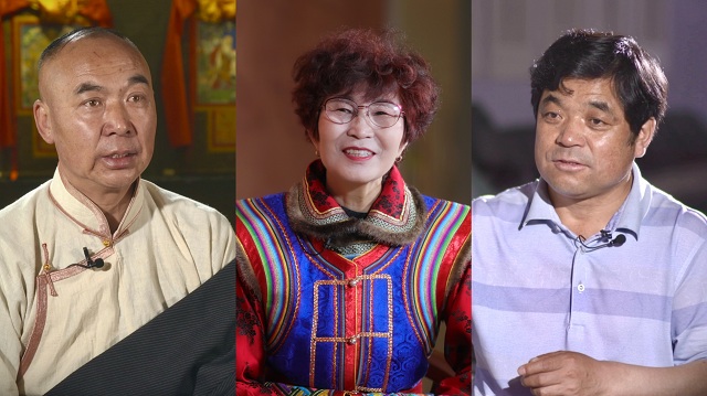 图为此次获得优秀成果的记录对象,依次为国家级代表性传承人交巴加布(左)、娜仁其其格(中)、卢锁忠(右)