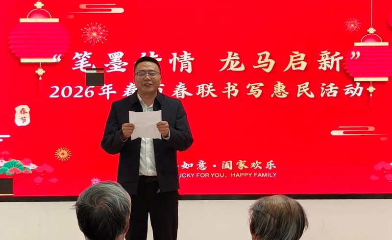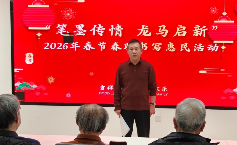 下午2时许,活动正式启动。活动由老干部学雷锋志愿服务团副团长兼秘书长李小舟主持,他说,春节将至,春联承载着人们对美好生活的向往,也是中华优秀传统文化的重要载体,通过义务写春联,让市民在参与中感受传统文化的魅力,同时传递邻里温情与社会关怀。