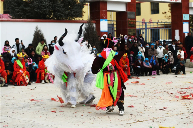 天祝县开展的社火表演也为新春添彩,以地道的传统民俗形式为当地群众拜大年、送祝福,让雪域乡村的新春年味愈发浓厚,尽显藏乡社火的独特风情。