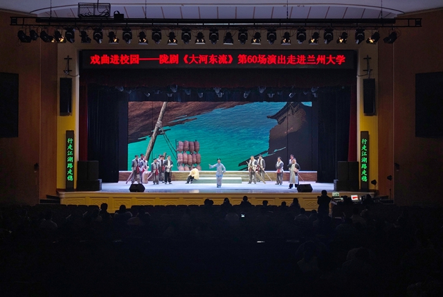 60场,是巡礼更是抵达。两年间,《大河东流》在不断的演出中打磨成长,而第60场选择走进兰州大学榆中校区,别具深意。青年是文化的未来,戏曲的传承离不开年轻观众的参与和认同。在闻欣堂的舞台上,演员们以饱满的情感和精湛的表演,将黄河儿女的家国情怀与陇剧艺术的独特韵味展现得淋漓尽致。台下,青年学子沉浸其中,感受着传统戏曲在当下的生命力。这场演出,既是一次高雅艺术进校园的文化浸润,也是一次以黄河精神对话当代青年的精神传递。