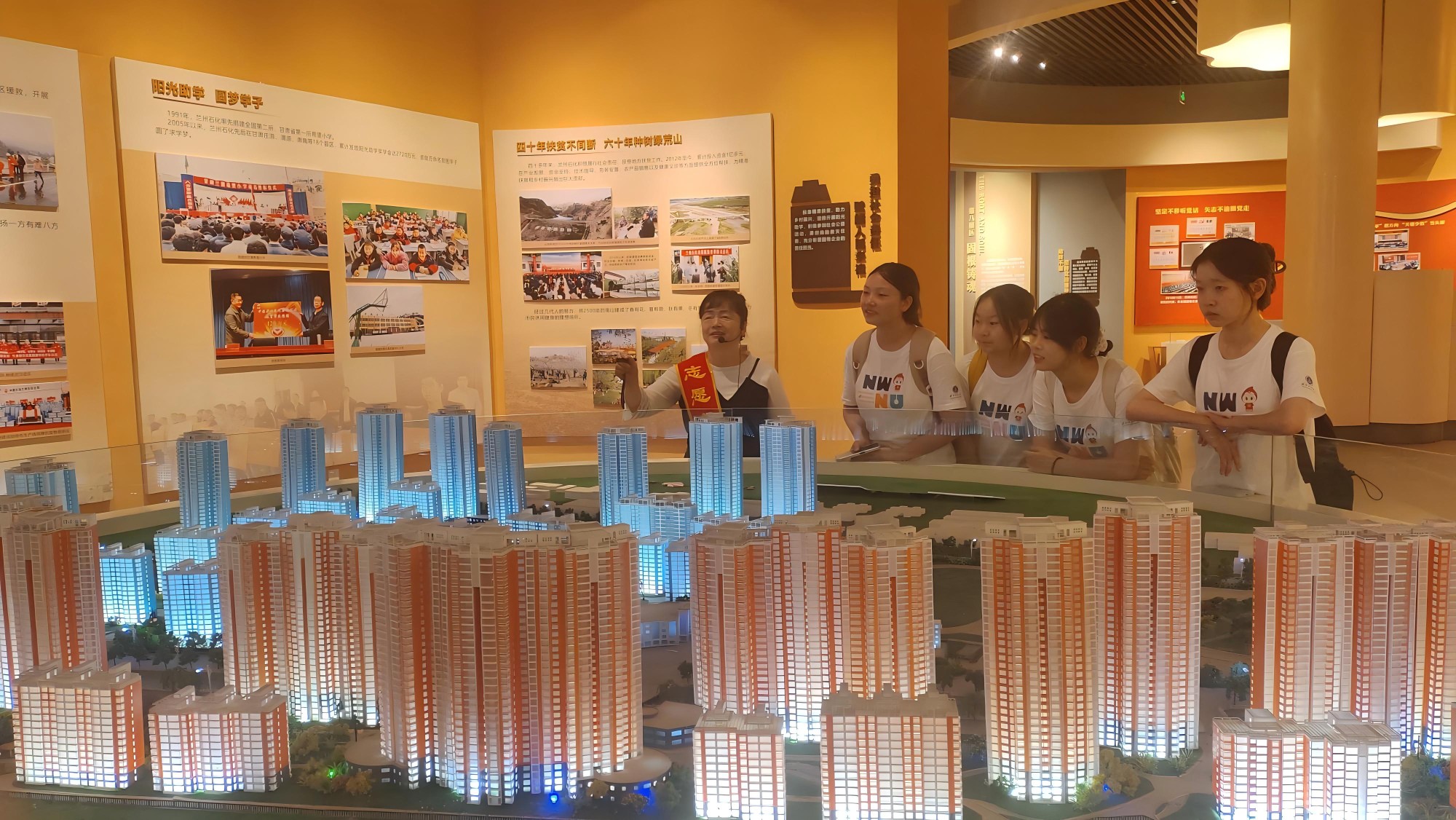 攻坚:勠力同心,乘风破浪实践过程中,成员分工明确、相互协作,寻访工人之居,与不同岗位退休工人深入交流。期间常遇语言障碍、信任不足、信息错误等问题,不断调整采访策略。幸有章喜麟和杨佳祺老师细心解答,让成员体悟建厂初期的不易与时代精神。实践团还参观了石油精神爱国教育基地,在讲解员孙阿姨引领下,成员们感受“共和国长子”的发展历程。孙阿姨生动的讲述和精彩的快板表演,展现对兰石化的热爱,她义务讲解 6 年,以亲身经历传承石化精神。团队成员对孙阿姨深入采访,深受触动。