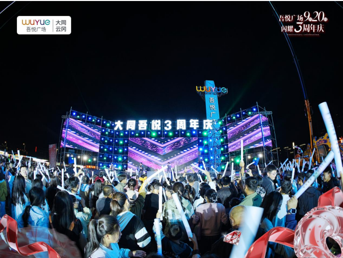 三年来,大同吾悦广场始终心怀感恩,不断前行。成长的道路上,每一份光辉与美好都离不开广大顾客的支持与信赖。是千万市民的陪伴,让吾悦广场的灯光更加璀璨;是每一位到访顾客的信任,让吾悦的服务更有力量。未来,吾悦广场将继续以顾客需求为核心,诚意满满,为这份信任而全力以赴。