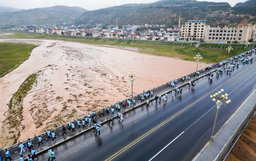 启动仪式后,随着发令枪响,1500名参与者组成的队伍有序出发。朝气蓬勃的身影与雨雾缭绕的沿途景致相映成趣,构成一道亮丽的风景线。