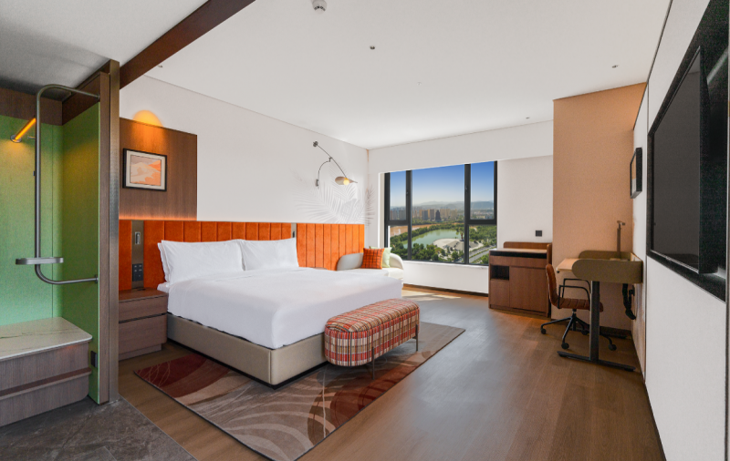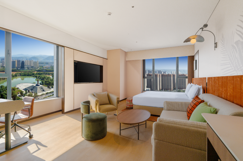 酒店拥有140间现代舒适客房,均位于29层及以上高空,包括家庭房及连通客房满足不同宾客的出行需求。透过客房的大面积落地窗,宾客可以尽享奔腾不息的黄河胜景或壮丽的城市景观。步入客房,全自动灯光系统及智能温控系统引导宾客进入放松与休憩的私人空间。客房配备65寸液晶电视、无线上网服务、可升降办公桌及人体工学椅、舒达床垫、无线充电设备及PeterThomas®彼得罗夫洗浴备品等,为宾客提供高端亦适居的住宿环境。为满足宾客多样化的旅行需求,配有沙发床的家庭房及特别设置的连通客房让宾客在旅行中进一步获得更多的自由度与灵活性。