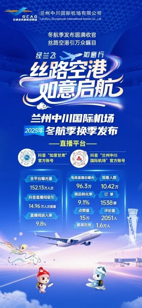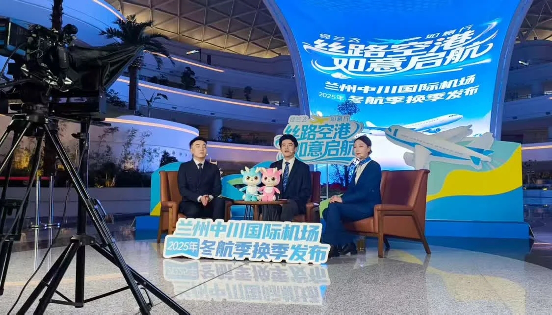 2025年10月24日-25日,兰州中川国际机场在GTC综合交通中心,以“丝路空港·如意启航”“冬日经兰飞天下,畅行如意游八方”为主题,联合东航、海航、川航、春秋航、华夏航等航空公司,以及省民航航空发展有限公司、携程旅行、兰州市博物馆等“航文旅”企业,成功举办两场冬航季换季直播发布活动,兰州机场党委书记、董事长何海峰出席活动并致辞。