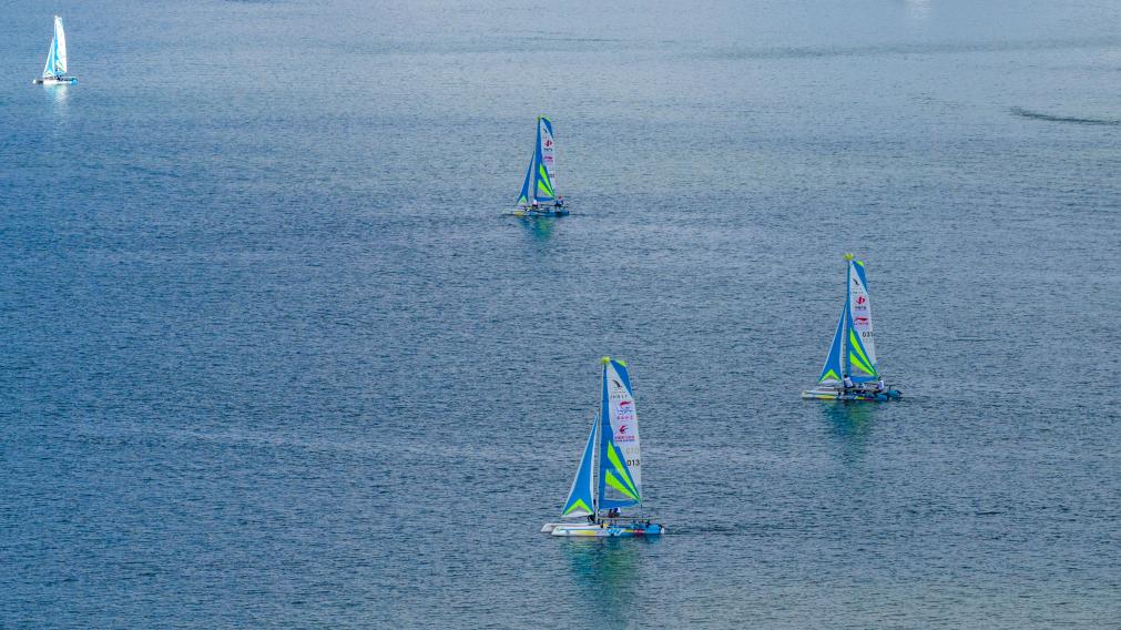 10月25日,中国万水千帆赛大理站在云南省大理白族自治州开赛,图为参赛船只从出发点下水。新华社记者 胡超 摄