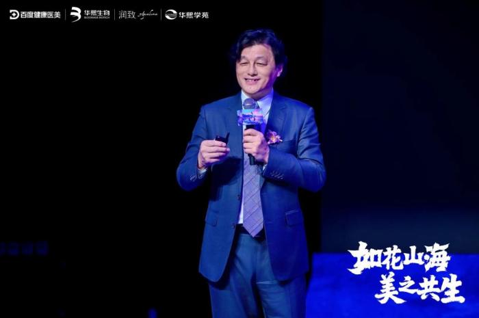 《如花山海》艺术家、洛可可创新设计集团董事长贾伟在致辞中,揭示了艺术与医美的深层共通性——两者皆以探索生命本真为核心,以治愈为内核。他提出美是感知力、认知力、创造力、想象力的融合,而医美医生与艺术家一样,需用“眼”观察人体比例,用“脑”整合美学与科技,用“手”塑造独特之美,本质都是对生命的敬畏与表达。