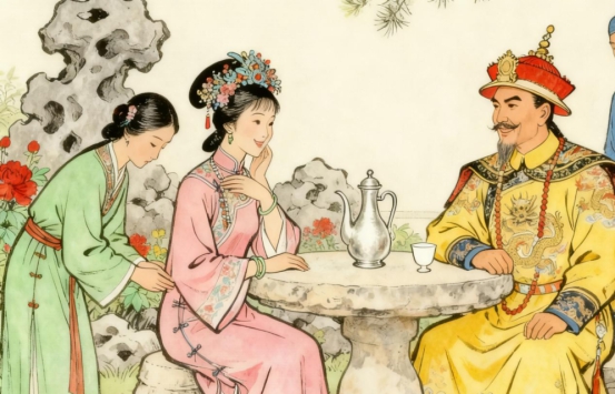 据传叶赫那拉氏的诅咒源于16世纪末至17世纪初女真部落的冲突,努尔哈赤统一女真时,叶赫部首领布扬古在城破前发誓:“我叶赫那拉就算只剩下一个女人,也要灭建州女真!”这一誓言被后人演绎为“叶赫那拉诅咒”,声称叶赫后裔将复仇爱新觉罗家族。而为何后宫佳丽三千,乾隆独宠舒妃?乃至绿牌翻掉漆,也宠爱一如往昔。皆因一日乾隆闲逛御花园,偶遇舒妃抚腹蹙眉轻叹,眉间一粒朱砂痣突显,好似那林中孤傲人参清丽脱俗。乾隆不禁脱口赞曰:“轻入瑶池舒广袖,蹙眉一叹玉兔留”,一声轻赞把正在池边腹疼难忍的舒妃吓得惊慌失措,如梨花带雨般将乾隆逗得开怀大笑。是夜翻牌,继而不断,以至绿牌掉漆独宠一人。舒妃虽是得宠,却因腹中有疾而未得孕,亦成心中痼疾。