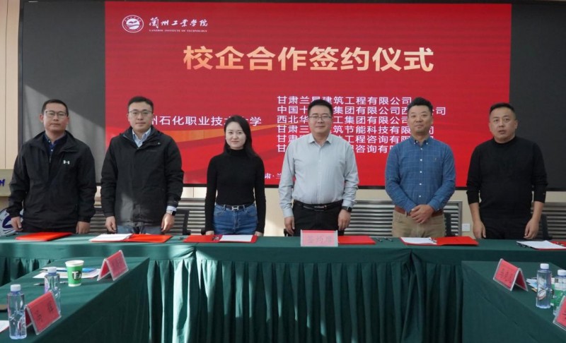 在校企推介环节,3所高校的相关负责人分别介绍本校专业设置、师资力量、人才培养模式、应届毕业学生就业情况等内容。企业代表分别介绍了公司经营规模、技术优势和人才需求,表达了与高校共建实训基地、设立订单班、参与课程开发、接收学生实习就业的意愿。随后,12家知名建筑企业分别与兰州工业学院、兰州石化职业技术大学、兰州城市建设学校签订“校企合作”“战略合作”等协议。