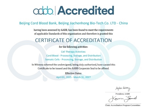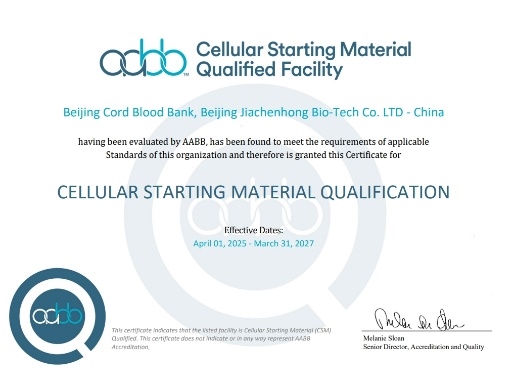 2025年2月,北京市脐带血库顺利通过血液与生物治疗促进协会(AABB)认证复审并再次获得认证证书,这是自2013年1月1日首获认证后连续第七次通过该认证、完成第六次复审,为保障脐带血来源细胞治疗的安全性和有效性提供了有力保障。更具里程碑意义的是,此次还通过了细胞起始材料(CSM)的AABB资质认证复审,CSM认证不仅是质量标签,也标志着北京市脐带血库向着从“储存服务机构”到“治疗解决方案提供机构”的战略转型迈出关键一步。