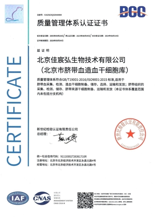 2025年7月28日—30日,国际质量管理体系认证机构专家组对北京市脐带血库进行年度审核,我机构再次通过ISO9001国际质量管理体系认证,自2005年以来已连续20年获此殊荣。审核覆盖脐带血业务全流程,专家组通过多种方式评估后认为质量管理体系运行高效规范,高度评价质量管理水平。这份跨越二十载的坚持,是北京市脐带血库毫不动摇坚守质量生命线的最好证明。