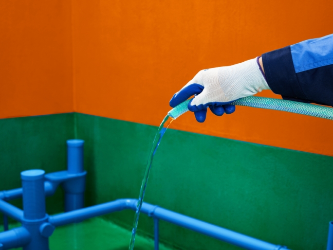 每一个前期步骤都是为持久的防水效果奠定基础,比如,日丰丰材防水材料进场严格分区、妥善防护。同时,通过包装二维码溯源验真,确保所有物料均符合日丰企业集团的严苛品质要求。此外,施工前彻底清理基层,并对阴阳角、管根等细微处进行堵漏王填充处理,杜绝带着“隐患”开工。