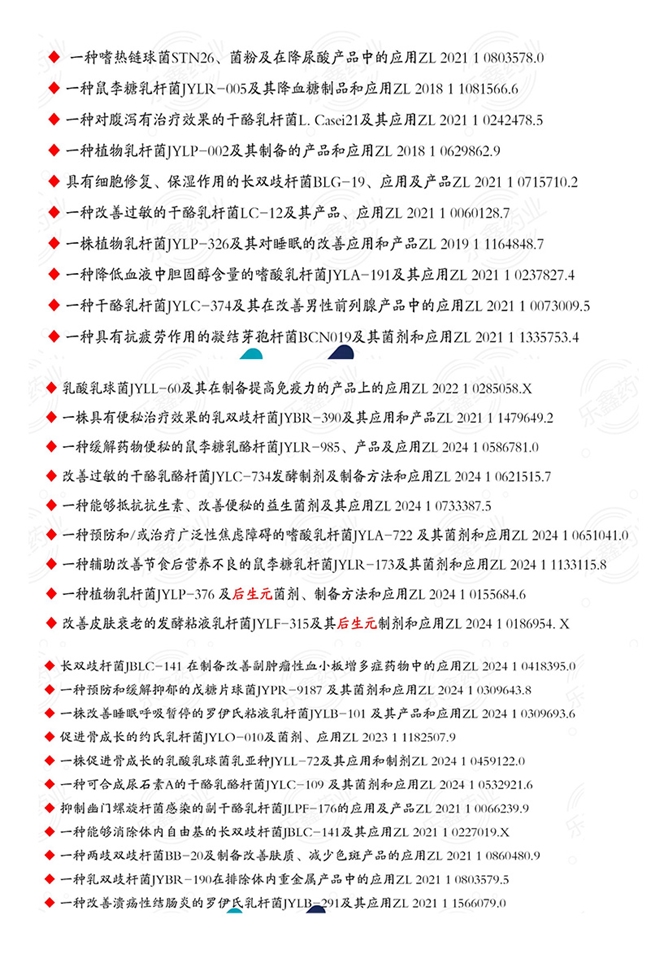 ZL202110066239.9,为胃部健康增添保障。同时,它拥有六大益生菌生产核心技术,包括乳酸菌胃酸胆盐抵抗技术、乳酸菌活菌冻干保护技术、微生物富集发酵培养技术、益生菌两次多层包埋存储技术、益生菌肠道定植增强技术、益生菌耐热及长期存储技术,从各个环节确保产品高品质。本品因菌种较多,若有个别结块属于正常现象,不影响产品质量及服用。生产企业已通过ISO22000国际食品安全管理体系认证、IS09001质量管理体系认证,是山东省放心消费示范单位、中国3.15诚信企业,并通过美国FDA注册,还有北京本草康中医药研究院提供技术支持,品质值得信赖。