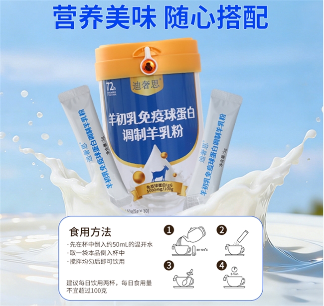 如果说优质奶源是它的“体魄”,那么其核心配方则是它的“灵魂”。迪奢思的核心亮点,在于其添加了珍贵的羊初乳免疫球蛋白(IgG)。羊初乳是母羊产后3天内的乳汁,富含高浓度的免疫球蛋白、生长因子等活性物质。